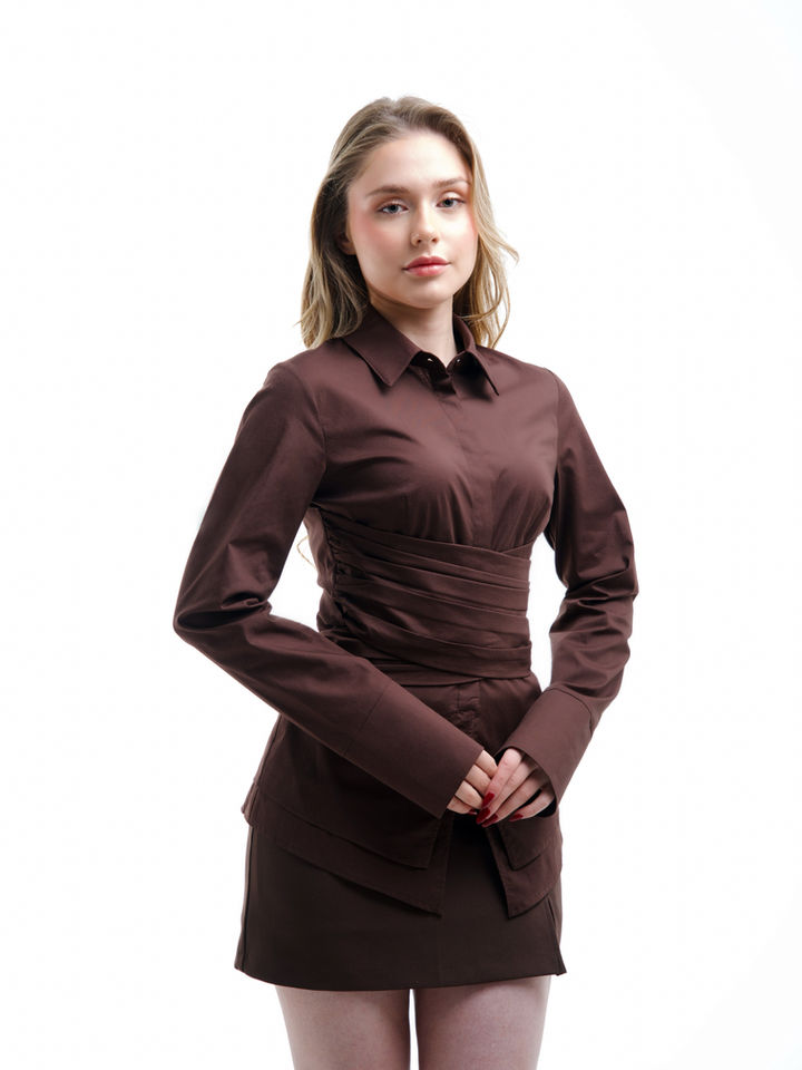 Brown Wrap-Waist Shirt